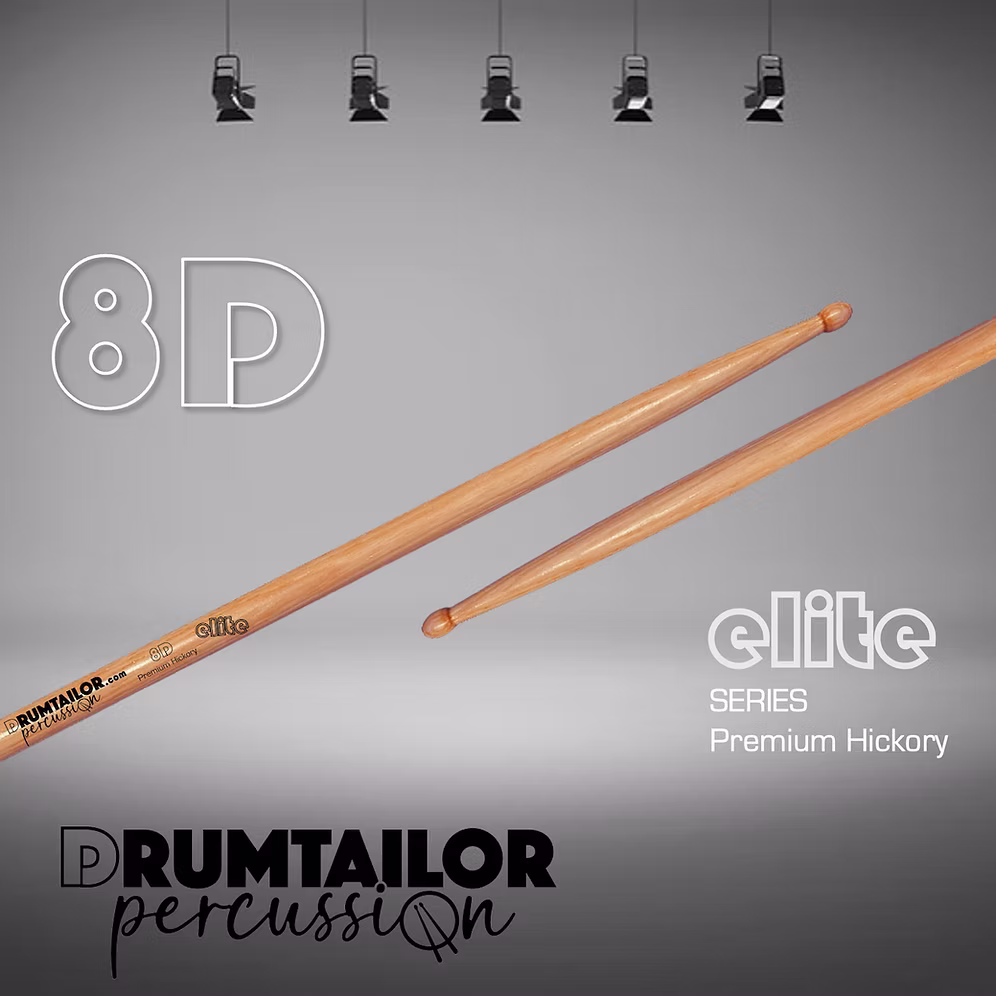 The new 8D model for 2025 is a lightweight and balanced stick, featuring a Teardrop tip that delivers a bright cymbal sound.