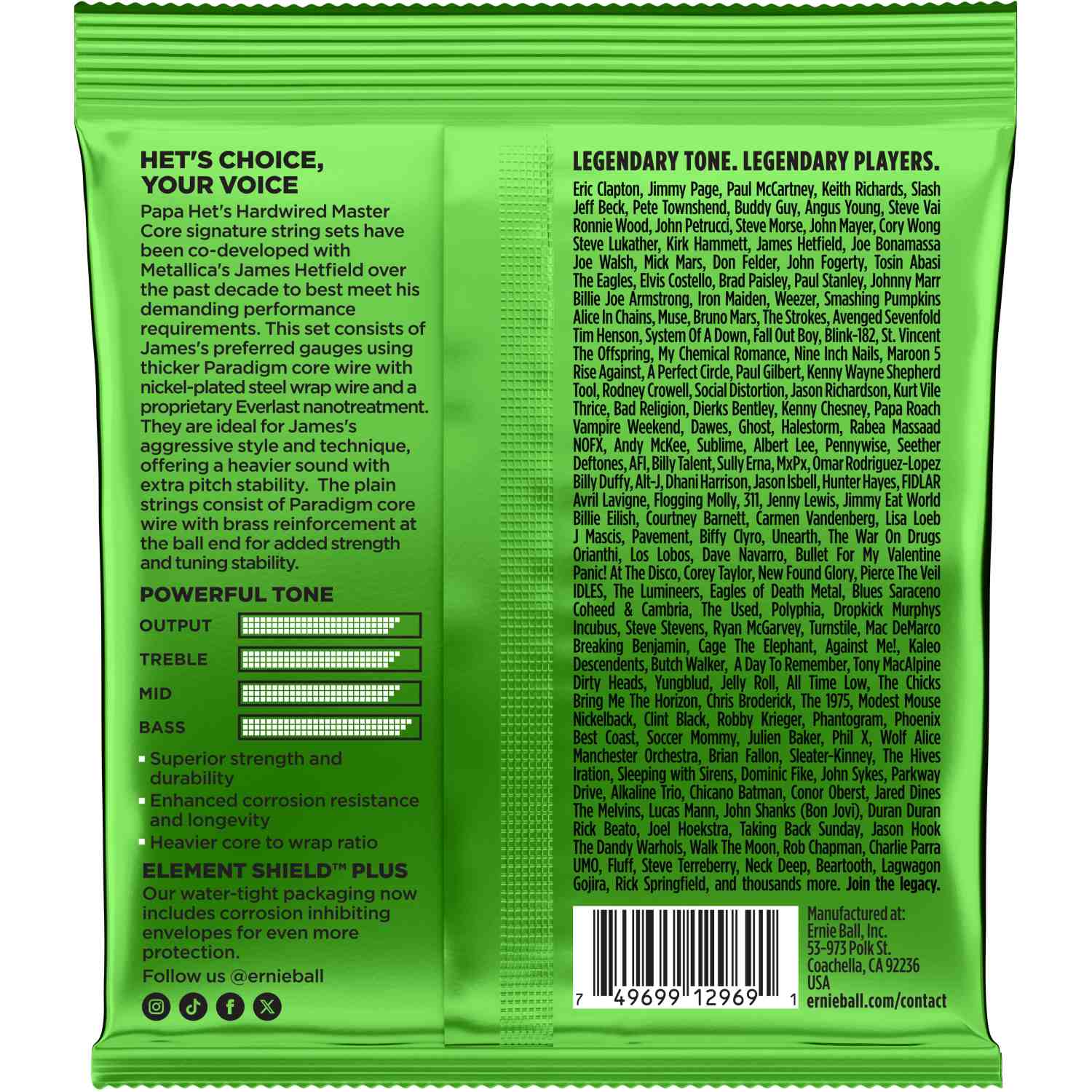 Papa Het’s Hardwired Master Cores signatursträngar har utvecklats tillsammans med Metallicas James Hetfield under det senaste decenniet för att bäst uppfylla hans krav på prestanda. Detta signaturset består av James föredragna 11–50-strängtjocklek i kombination med en kraftigare Paradigm-kärna. Dom är idealiska för James legendariskt aggressiva spelstil och teknik, och erbjuder ett tyngre sound med extra stämningsstabilitet. Dom ospunna strängarna består av en ren Paradigm-kärna med RPS-förstärkning i mässing vid kuländan för ökad hållfasthet och bättre stämningsstabilitet.
