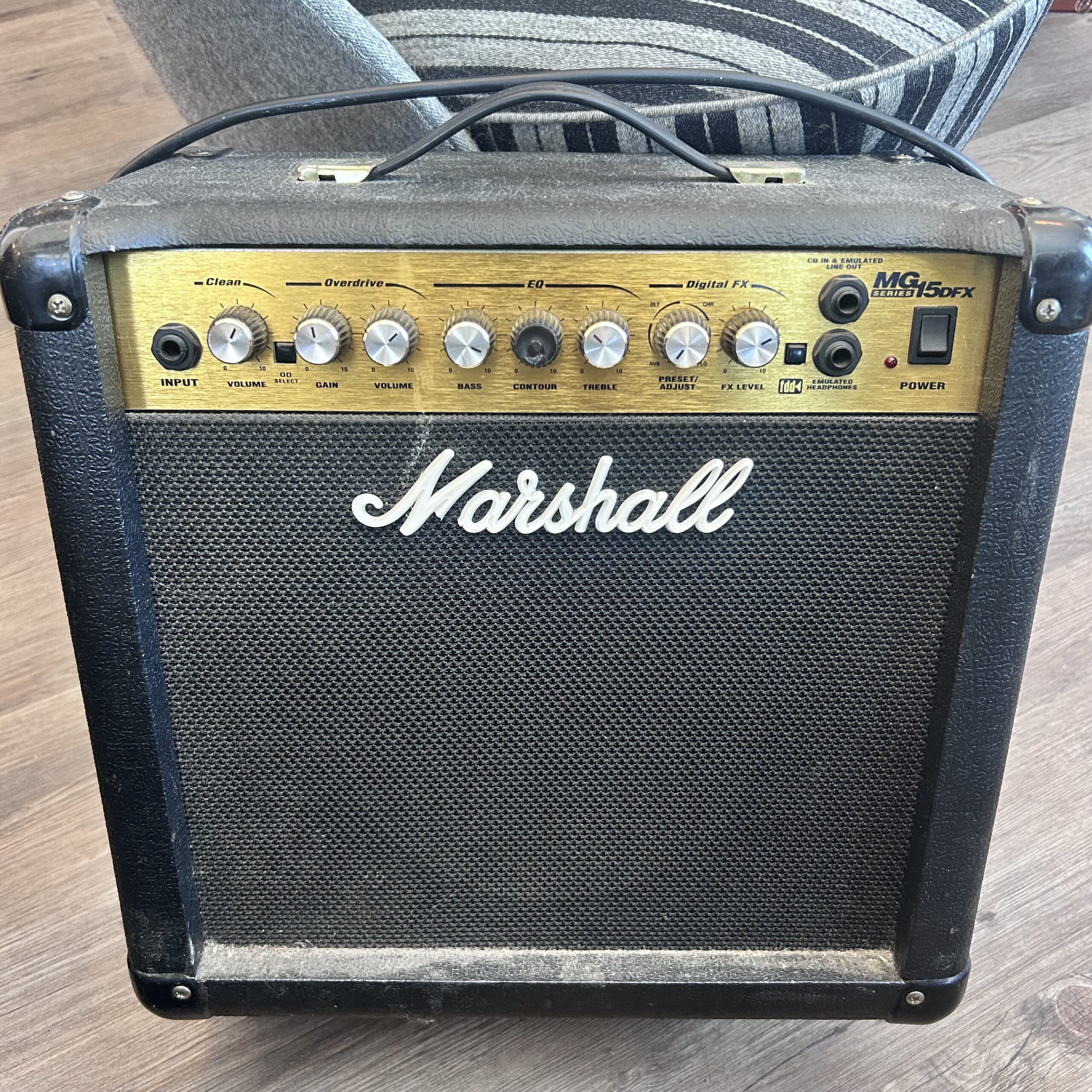 Vi säljer en begagnad Marshall MG15DFX combo för kunds räkning.