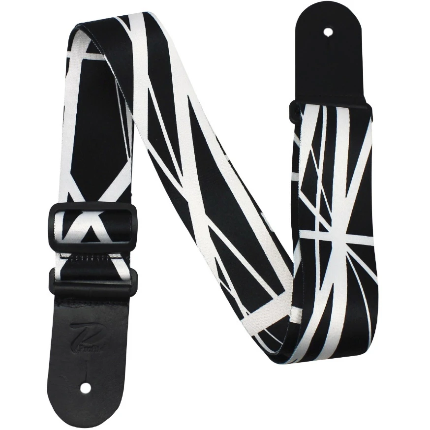Axelband i polyester till bas & gitarr, ändar i italienskt läder, slitstarkt, Stripes Black-motiv.