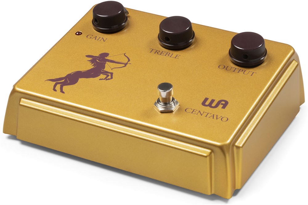 True to the vintage pedal design, the Centavo circuit is housed in a custom-cast golden enclosure with carefully tapered oxblood tone knobs.