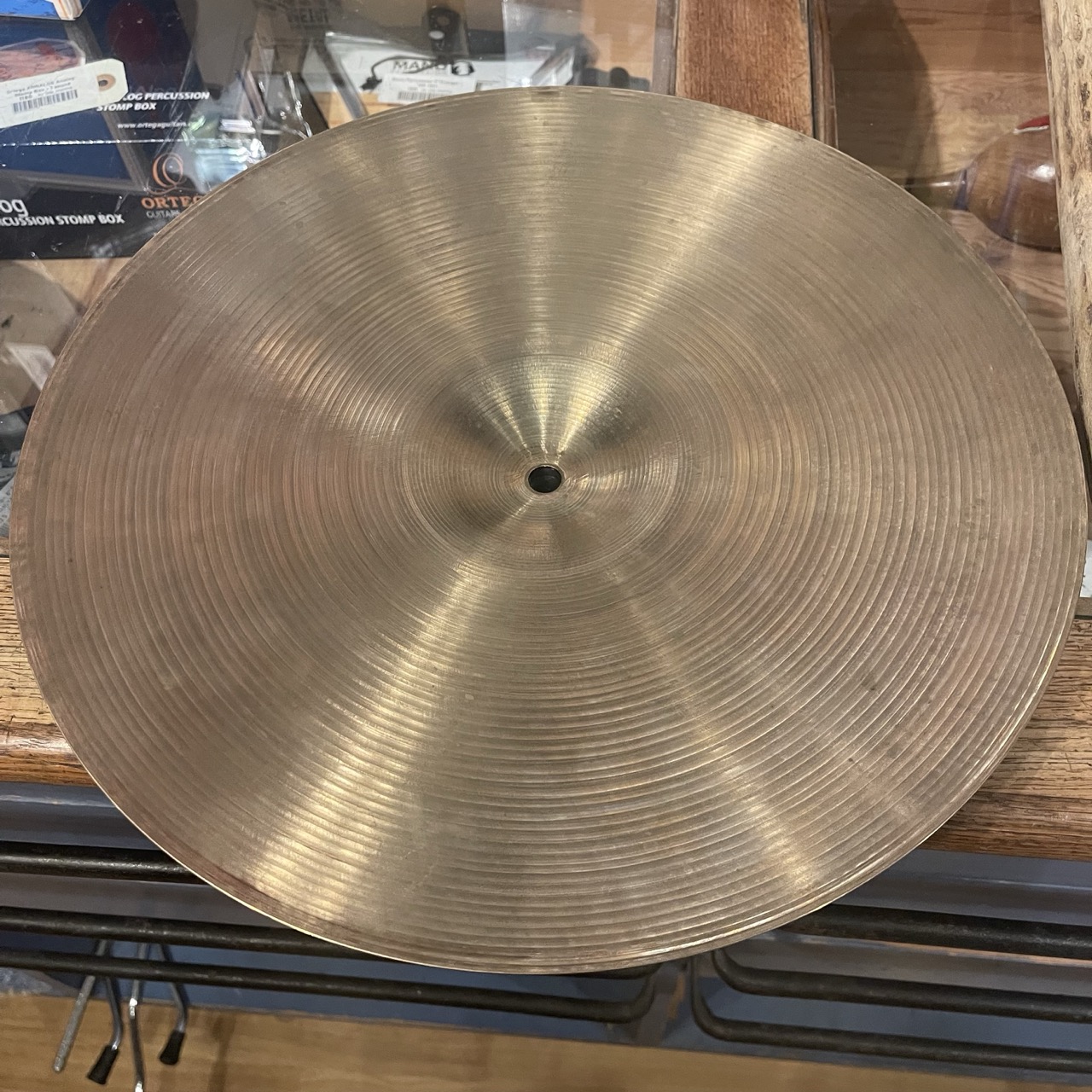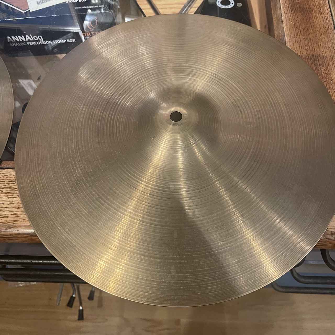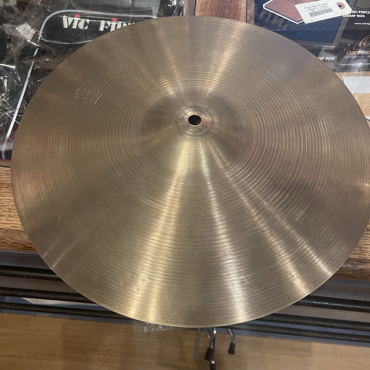 Begagnad Zildjian Avedis HiHat 15″ (Made in U.S.A) Vintage, möjlig 60-talare. Svårt att se loggan, men ser ut att ha 3 prickarna och punkter mellan bokstäverna på USA. Vi kans skicka fler bilder på begäran.